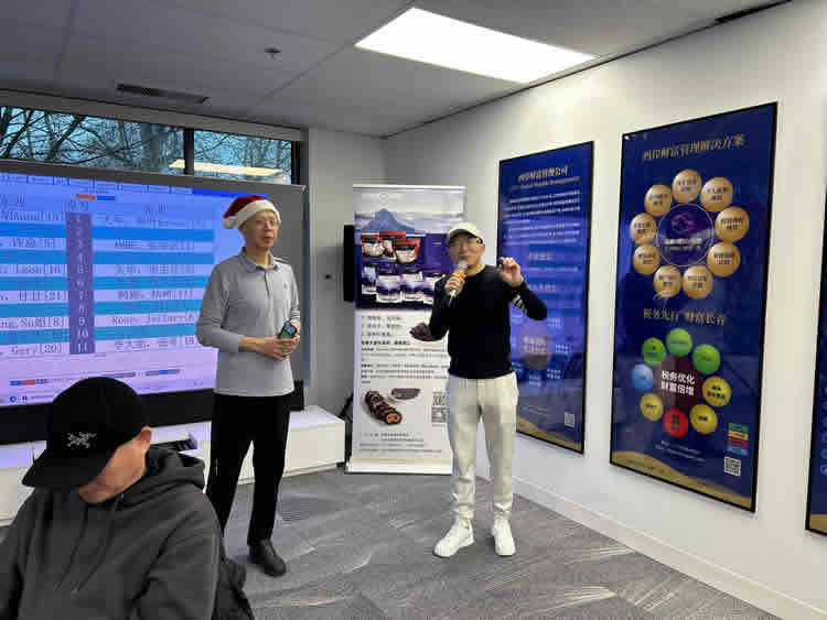 今日下午,温哥华掼蛋协会在列治文西岸财富公司隆重举行“迎圣诞庆新年”庆祝活动,近50名会员欢聚一堂,共同迎接节日季的到来。活动由协会会长陈正军先生主持,他首先向现场参会者致以新年的祝福,并通过大家转达对全体会员的问候,祝愿大家在新的一年里生活愉快、身体健康、阖家幸福,事业蒸蒸日上、更上一层楼。