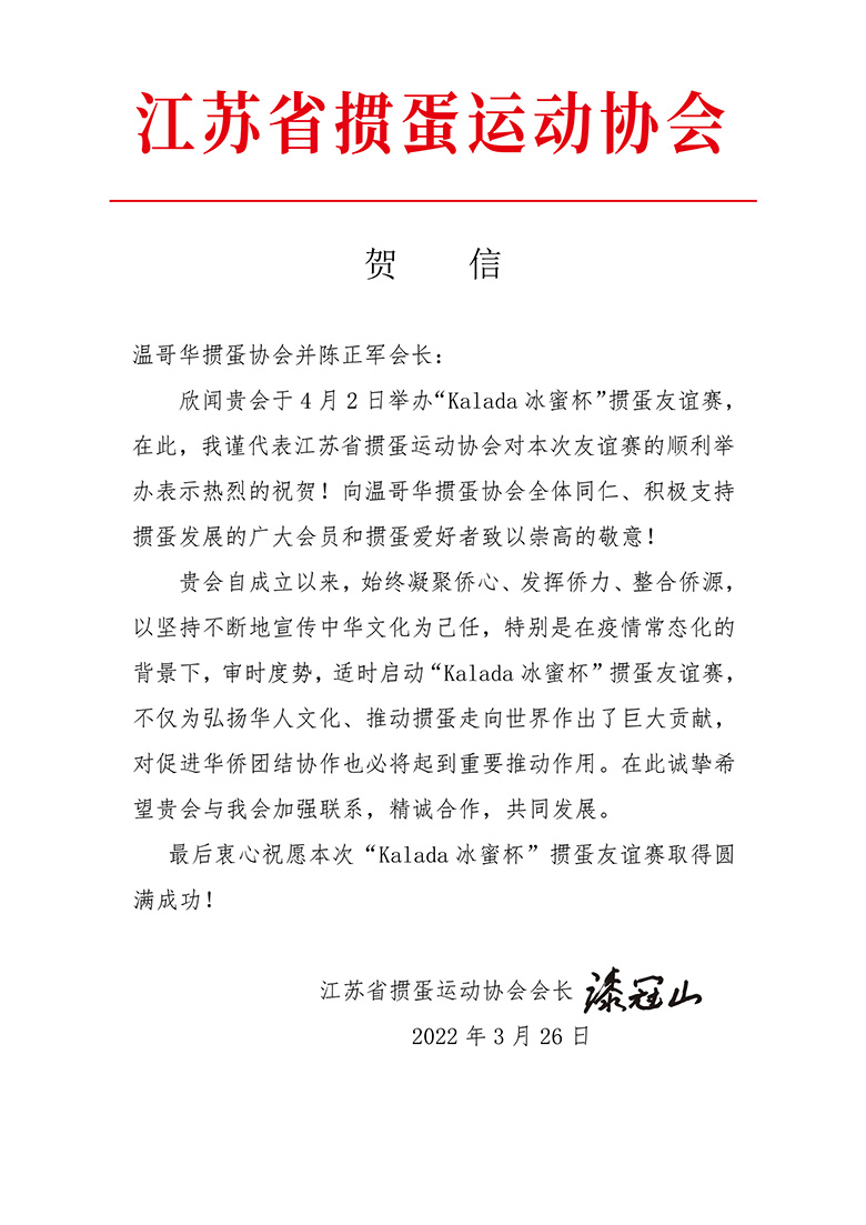 - 2022-09-15江苏省掼蛋运动协会陈福亚书记的贺信