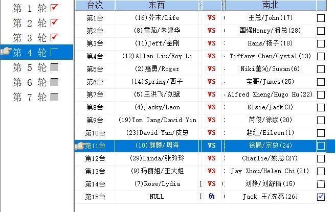 经过四轮激烈角逐,王总/John组合获得冠军,雪茄/朱建华组合获得亚军,Jeff/金刚组合获得季军。