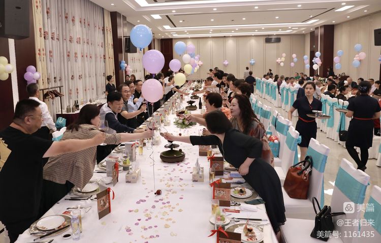 端起美酒,把酒言欢,气氛热烈。两排各50人的长条餐桌,座位不分主次,充分交流互动。
