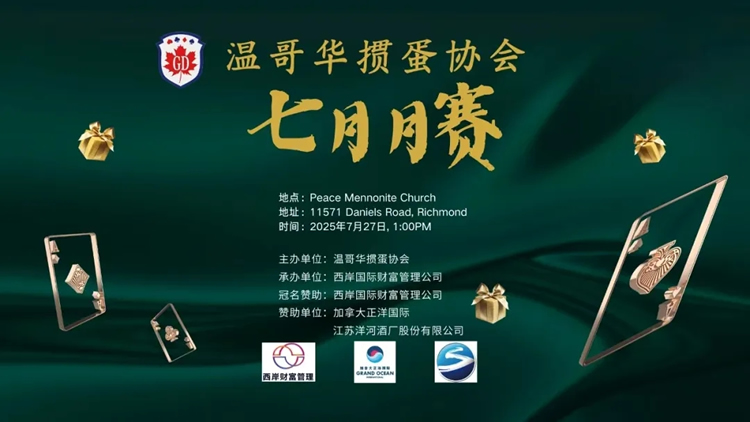 2025年7月27日,温哥华掼蛋协会在Peace Mennonite Church社区(11571 Daniels Road, Richmond)室内篮球活动场地成功举办了本月的掼蛋月赛,吸引了80多位掼蛋爱好者的参与。比赛现场气氛热烈,选手们展现了高超的牌技和默契的团队合作,为观众带来了一场精彩的智力对决。