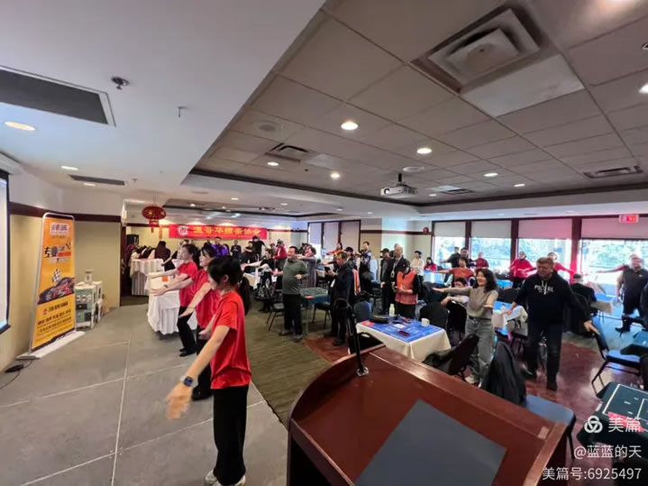 赛场内,选手们两两搭档,遵循“情况不明对子先行”“炸7不炸8”等掼蛋“经典语录”,在牌局中展现策略与默契。值得一提的是,本次活动吸引大量中青年参与者,打破传统棋牌活动的年龄壁垒。今天的比赛经过四轮角逐竞争,KEVINH, PaulXU、唐民,苏辉、枫叶Kevin,Victor获得冠、亚、季军。休闲间隙,玛丽姐舞蹈团队带领全场做经络伸展运动,小仙女的翩跹舞姿与李先生的萨克斯独奏《回家》将气氛推向高潮,赛场变身文化舞台;参赛选手泽石Charlie模仿领袖的脱口秀使紧张比赛气氛变得轻松活泼起来。