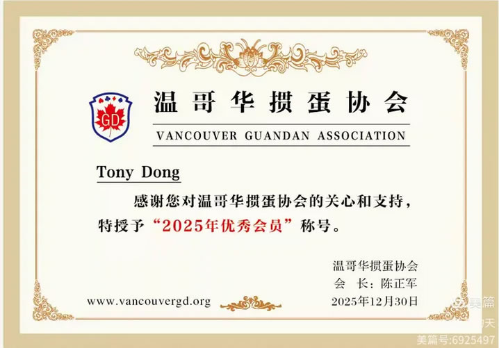 扑克牌的中国渊源——起源于唐代“叶子戏”,经丝绸之路传向世界。2018年,陈正军、周元等华人在温哥华创立掼蛋协会,以“娱乐、友谊、交流、合作”为宗旨,如今会员和掼蛋爱好者已近千人,成为加拿大三级政府支持的文化新军。正如协会负责人所言:“掼蛋不仅是游戏,更是激活脑细胞、增进跨代友谊的纽带。”