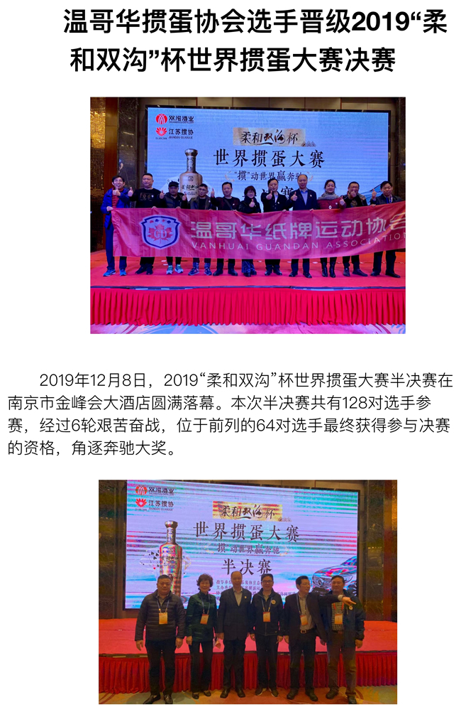 温哥华掼蛋协会选手晋级2019"柔和双沟"怀世界
